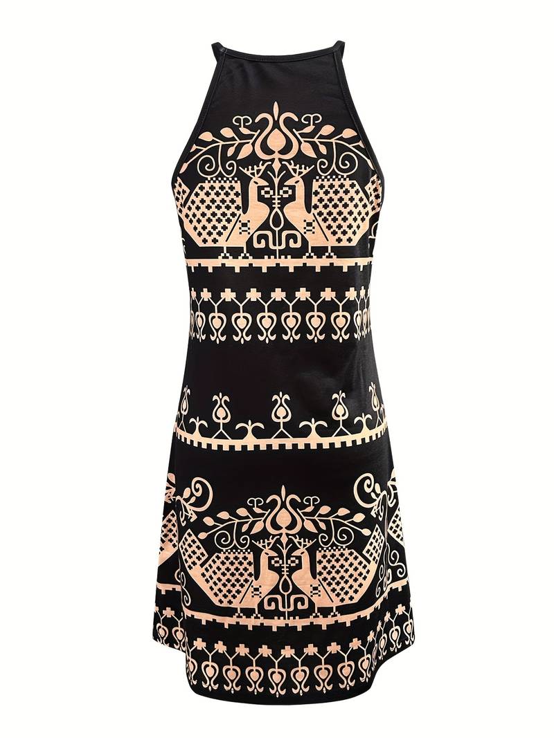 Deze jurk valt op door de abstracte print, die een vleugje eigentijdse chic toevoegt aan het ontwerp. De halternek halslijn voegt niet alleen een vleugje verfijning toe, maar creëert ook een flatterend silhouet. Fedora combineert naadloos opvallende patronen met een elegante halslijn, waardoor het de perfecte keuze is voor iedereen die op zoek is naar een uniek en modieus statement. Stap met vertrouwen en individualiteit in de schijnwerpers, want Fedora onthult een wereld van creativiteit met zijn abstracte print en stijlvolle halternekontwerp.