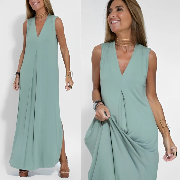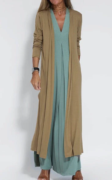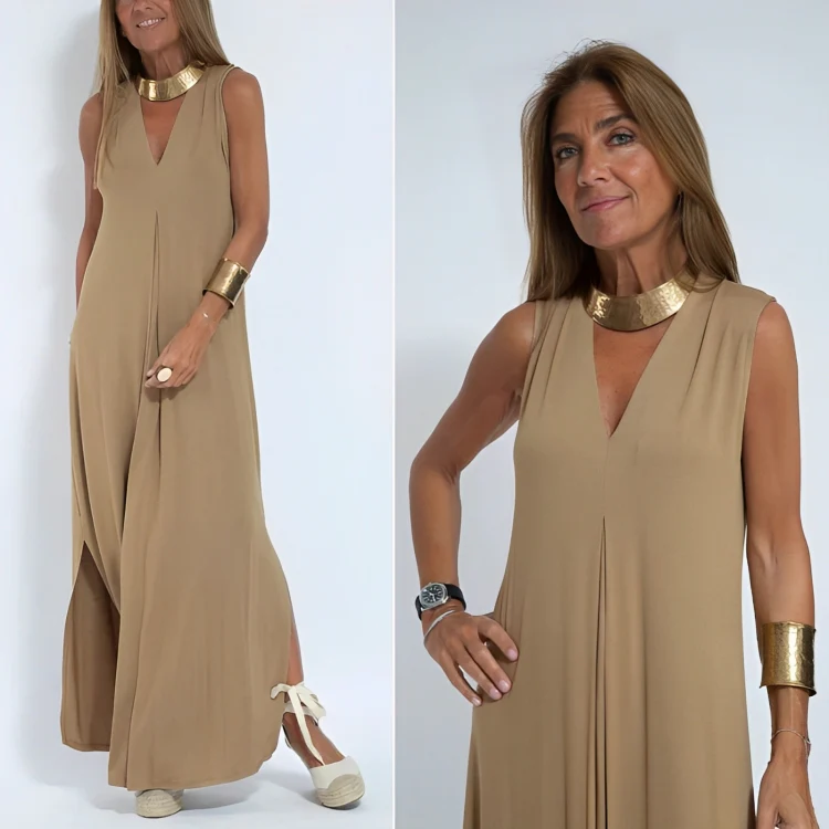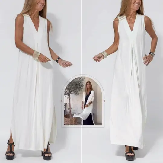 Deze afslankende en strakkere jurk met bijpassend vest is ontworpen om je silhouet te flatteren en tegelijkertijd een comfortabele pasvorm te bieden. De perfecte keuze voor wie er elegant uit wil zien zonder aan comfort in te boeten.