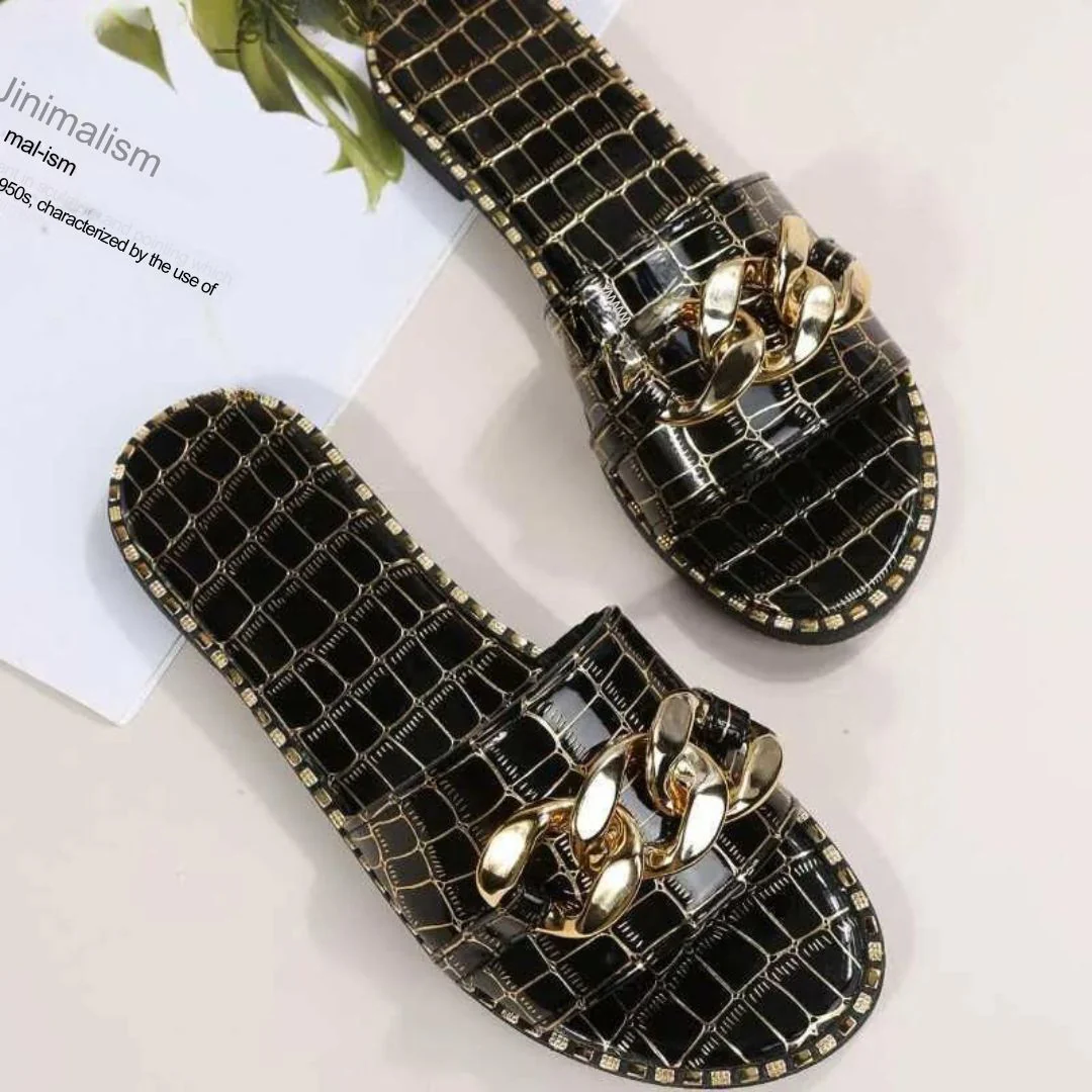 Ga voor luxe met deze Alice muiltjes met krokodillenmotief, versierd met opvallende goudkleurige kettingversieringen voor een vleugje weelde. De muiltjes zijn afgezet met een chique metallic detail dat een elegante touch geeft aan elke zomerse outfit. Deze sandalen zijn ontworpen voor de modebewuste man en bieden zowel stijl als comfort. Ze zijn ideaal voor overdag of als aanvulling op een elegante avondlook.