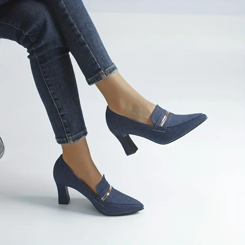 Ervaar een ongeëvenaarde stijl en tijdloze elegantie met onze ChicStride denim loafers. Deze pumps combineren comfort en klasse met een elegante spitse neus en een dikke hak. Gemaakt van denim van hoge kwaliteit zijn ze een veelzijdig en gedurfd statement voor je persoonlijkheid. Stap voorbij de modewereld en ervaar pure stijl met de denim loafers van ChicStride!