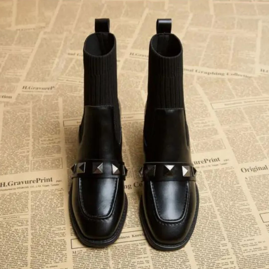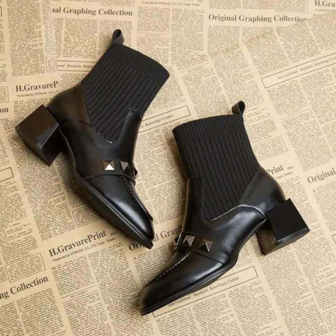 Deze Valencia – Chique enkellaarsjes met geribbeld detail met subtiele studs en een elastische gebreide inzet combineren een klassieke stijl met moderne accenten. Ze zijn zowel elegant als comfortabel, waardoor ze ideaal zijn om elke dag te dragen of voor speciale gelegenheden. Combineer ze met een jeans of een jurk voor een geraffineerde en trendy look.