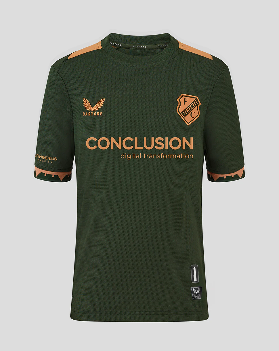 Het FC Utrecht Uitshirt 25/26 eert het rijke verleden van de stad met een moderne, verfijnde twist. Een uniek ontwerp, geïnspireerd op de historische kaart van Utrecht, waarbij de iconische singel die de stad vormt en verbindt, centraal staat. Een shirt dat de stad ademt, met de herkenbare lijnen van de singels en grachten subtiel verwerkt in het design. Of je nu juicht in Stadion Galgenwaard of zelf een balletje trapt – dankzij het ademende materiaal blijf je fris en comfortabel.