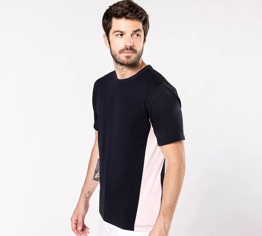 Premium T-shirt met een sportieve en casual look en een contrasterend inzetsel aan de zijkant van het shirt en onderkant van de mouwen. Het shirt is gemaakt van 100% jerseykatoen en is netjes afgewerkt met dubbele stiksels. Het shirt is verkrijgbaar in 9 verschillende kleurcombinaties; dus ga direct aan de slag in onze ontwerptool en geef dit premium shirt jouw eigen draai!