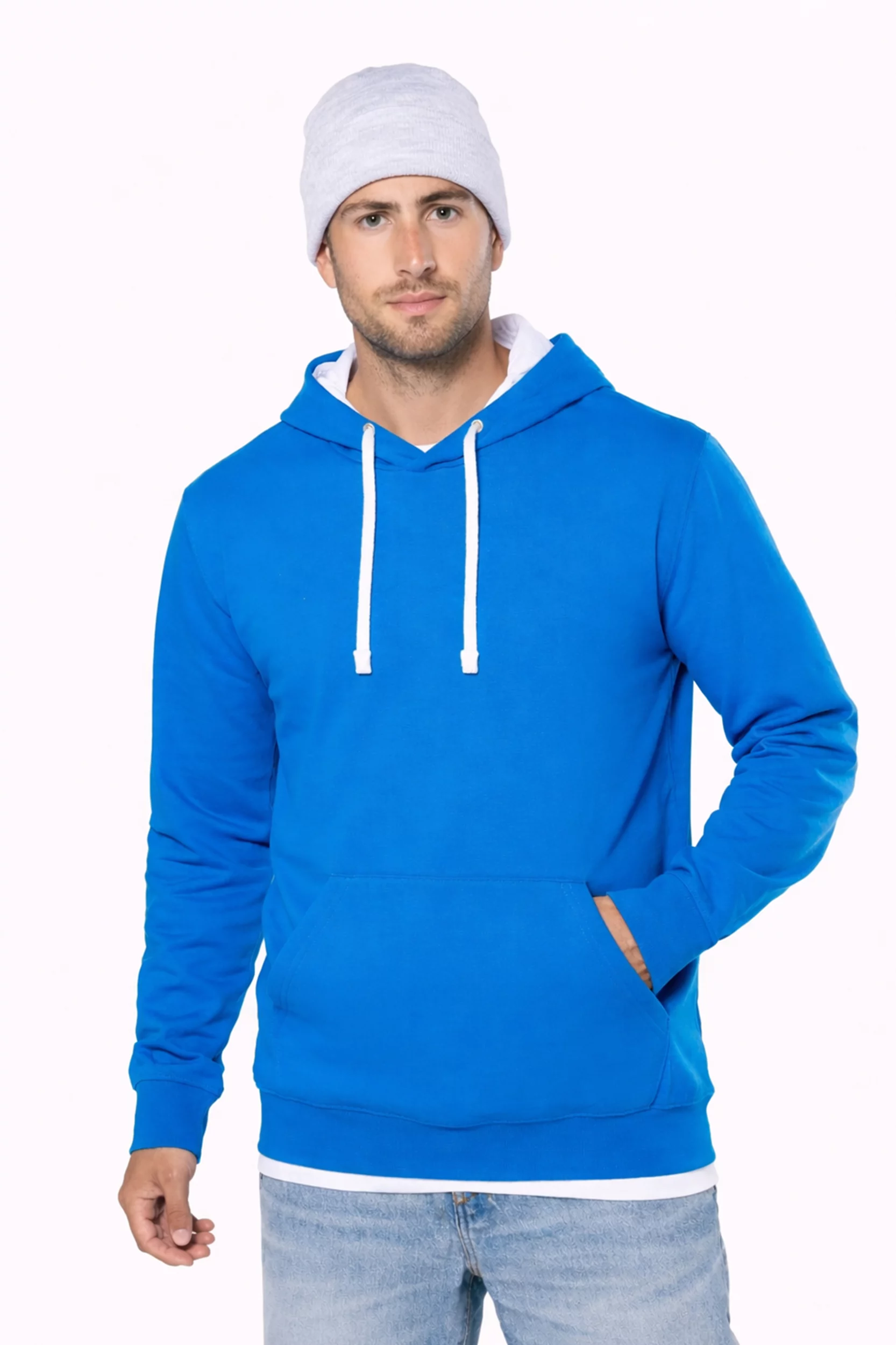 Hoogwaardige tweekleurige heren hoodie; comfortabel en warm! Eenvoudig te personaliseren in onze ontwerptool; ga direct aan de slag! Geborsteld fleece aan de binnenkant. ‘Kangaroe’ zak aan de voorkant met gaatje voor draadje en lusje aan de kraag voor mp3-oortjes. Afwerking in ribboord. Gevoerde en gecontrasteerde capuchon met aanrijgkoordjes.