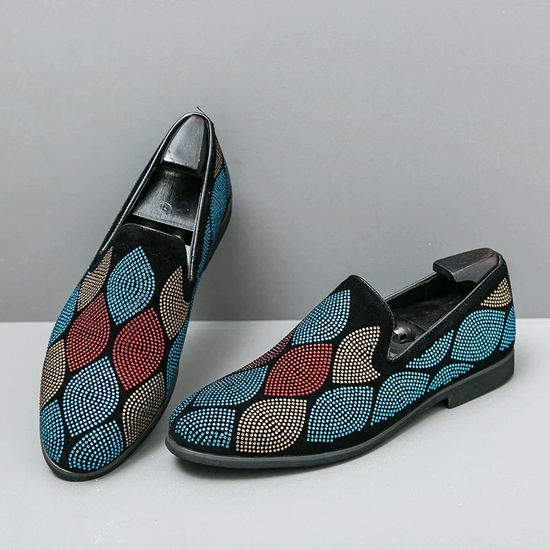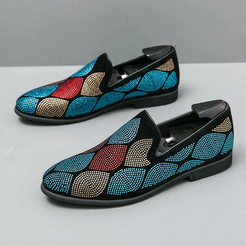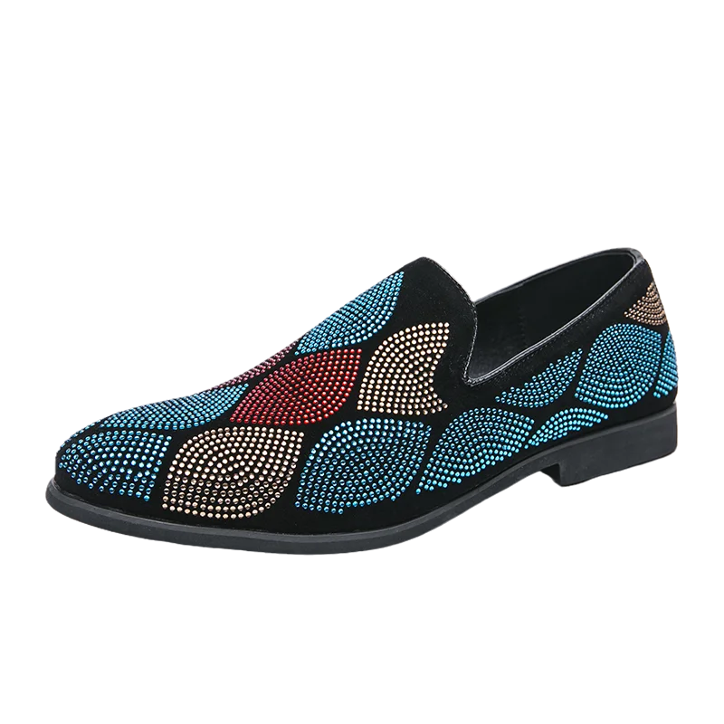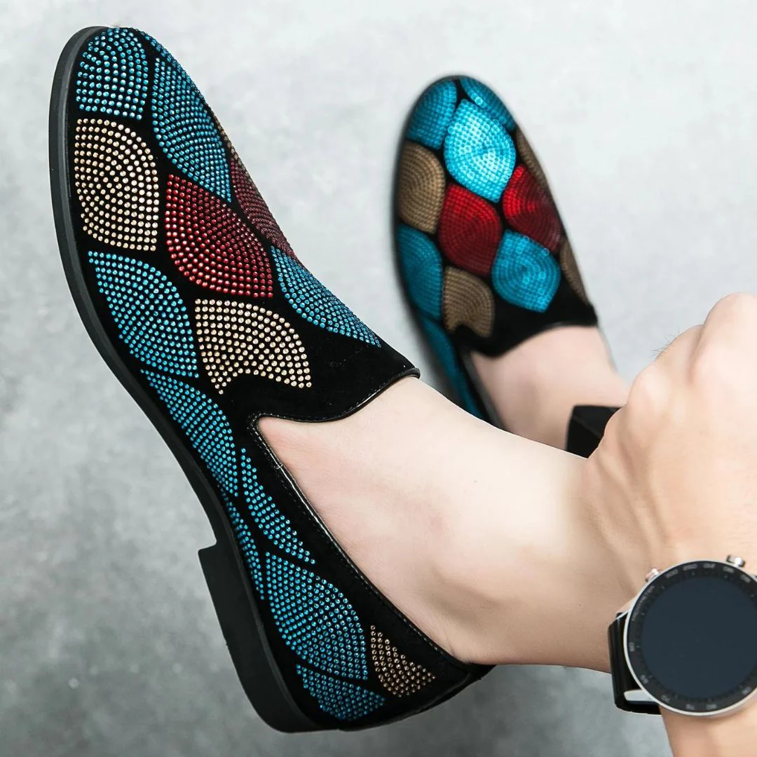 Maak een gedurfd statement met deze Lysandro – Moderne loafers met geometrisch patroon, voorzien van een uniek geometrisch patroon. Het opvallende ontwerp combineert comfort en stijl met een vleugje glitter voor extra flair. Deze loafers zijn het perfecte accessoire om een eenvoudige outfit op te fleuren of een gewaagder ensemble aan te vullen.