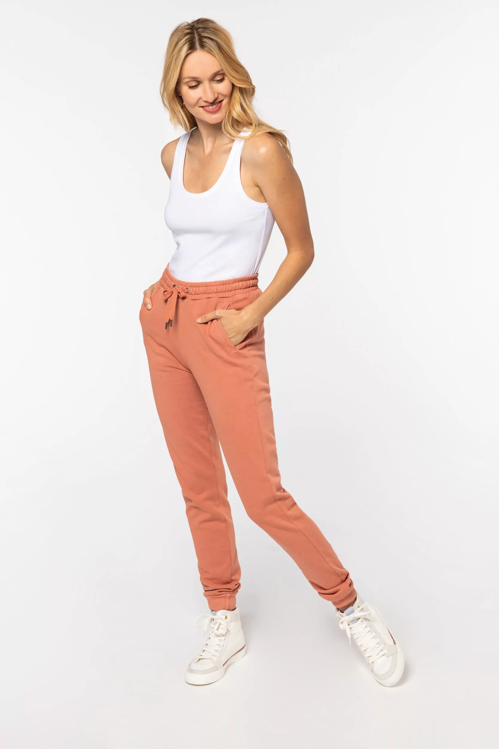Unisex joggingbroek gemaakt van 100% biologisch katoen, de binnenzijde van de broek is van ongeborstelde fleece (french terry). De broek heeft een gewasssen effect, dit zorgt ervoor dat iedere broek uniek is. De broek heeft twee zijzakken en een elastische tailleband, en is verkrijgbaar in 7 verschillende (unieke) kleuren.