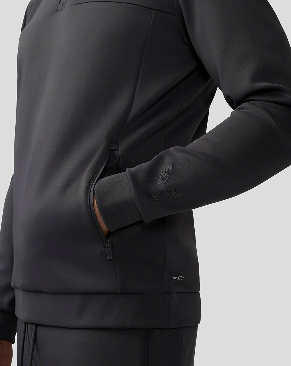 - Castore-logo op linkerborst, linkermouw en linkerzoom